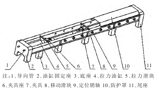 5)拉力滑块采用整体加工形式,增加拉力机强度,减少试验误差。与油缸采用铰接形式安装,方便更换与维护。